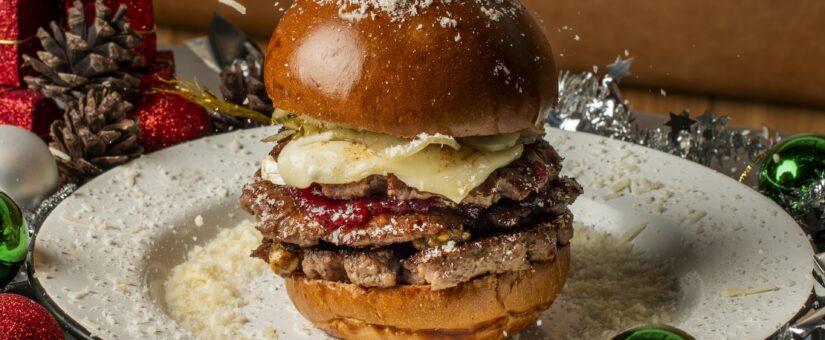 Three of the finest grass-fed Australian beef patties, smashed, and clothed in decadent layers of cheese! The first coated with onion jam and blue cheese, the second cloaked in melted Brie with jewels of cranberry jam and the third veiled in smoked mozzarella, topped with a crown of pickles. Finished off with a blizzard of parmesan snow.